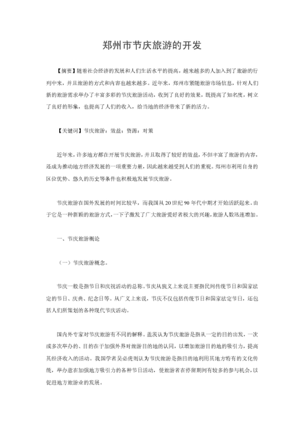 鄭州市節(jié)慶旅游的開發(fā)