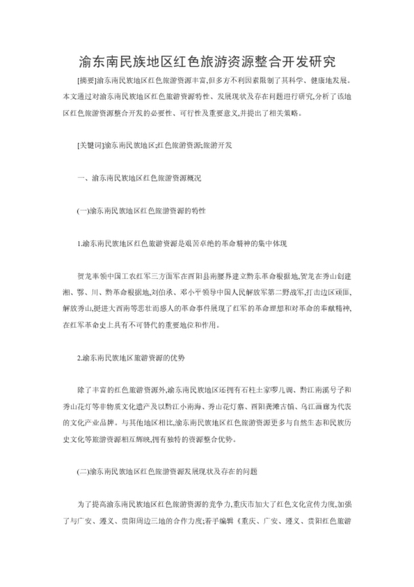 渝東南民族地區(qū)紅色旅游資源整合開發(fā)研究