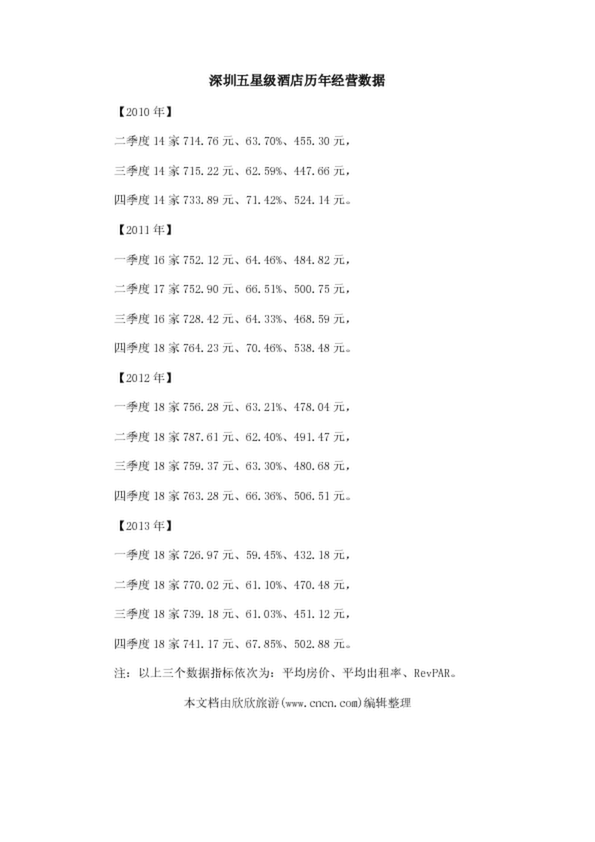 深圳五星級(jí)酒店歷年經(jīng)營(yíng)數(shù)據(jù)(1.49KB)