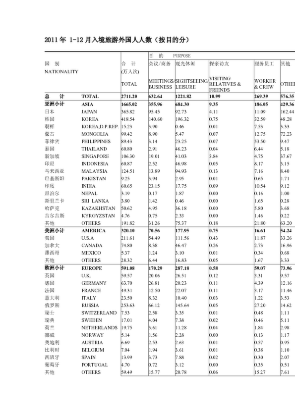 2007年11月入境旅游接待收匯情況