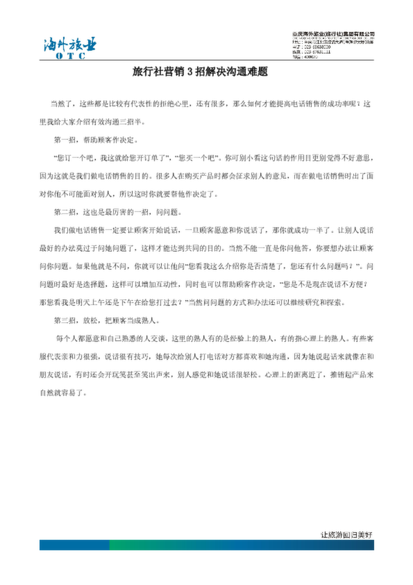 旅行社營銷3招解決溝通難題,本文旅行社開展網(wǎng)絡(luò)營銷中存在的問題,并提出了解決...