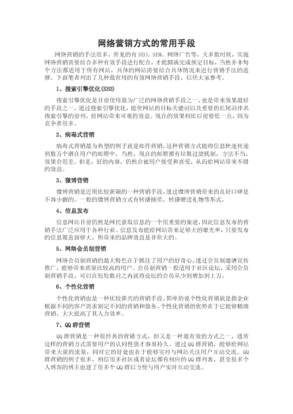 網(wǎng)絡(luò)營(yíng)銷方式的常用手段
