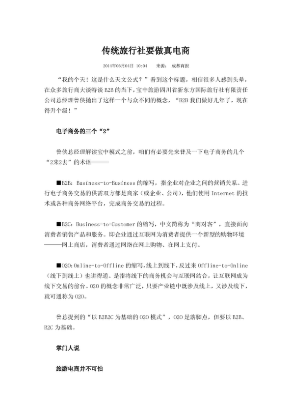 傳統(tǒng)旅行社把信息技術(shù)巧妙地運用到自己的生產(chǎn)經(jīng)濟各個環(huán)節(jié),運用好了就是優(yōu)秀的旅游電子商務。 目前,傳統(tǒng)旅游受到前所未有的沖擊,很多傳統(tǒng)旅游企業(yè)也開始嘗試向旅游電子商務轉(zhuǎn)型,但這些企業(yè)對旅游電子商務了解甚少,再加...