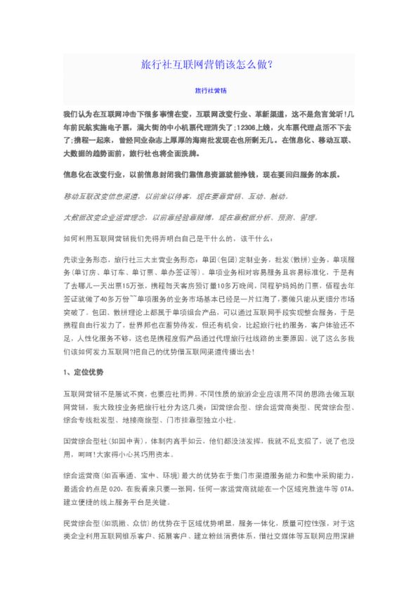 網(wǎng)絡(luò)營(yíng)銷,說(shuō)白了,就是在互聯(lián)網(wǎng)上賣東西,對(duì)于旅行社來(lái)說(shuō),開展網(wǎng)絡(luò)營(yíng)銷主要是在...做好網(wǎng)絡(luò)廣告的要點(diǎn),在于選擇到哪個(gè)網(wǎng)站去做網(wǎng)絡(luò)廣告。 視頻營(yíng)銷:視頻營(yíng)銷即用...