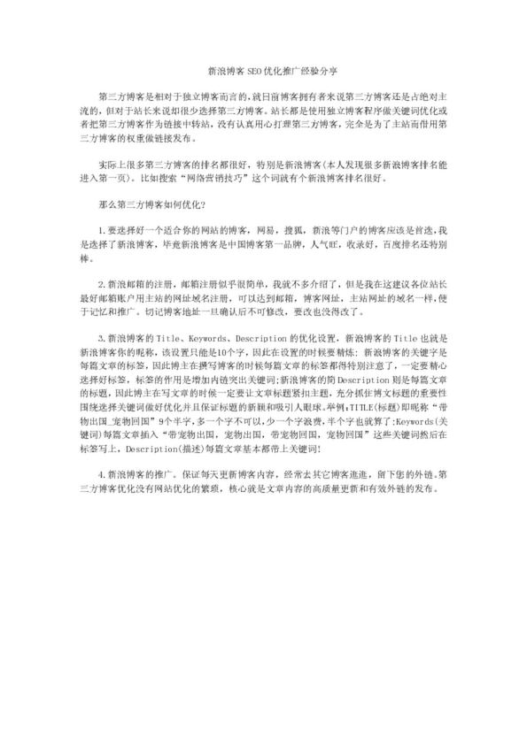 旅行社如何在新浪博客進行SEO優(yōu)化推廣經(jīng)驗分享