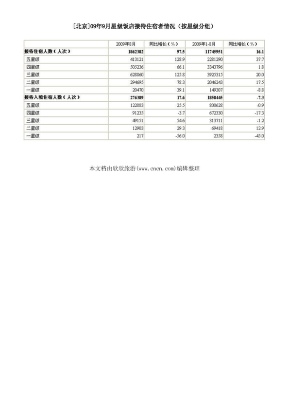 [北京]09年9月星級(jí)飯店接待住宿者情況(按星級(jí)分組)