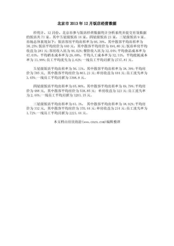 北京市2013年12月飯店經(jīng)營數(shù)據(jù)