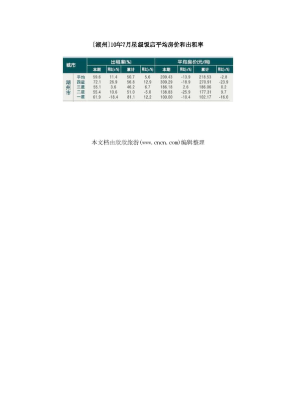[湖州]10年7月星級(jí)飯店平均房價(jià)和出租率