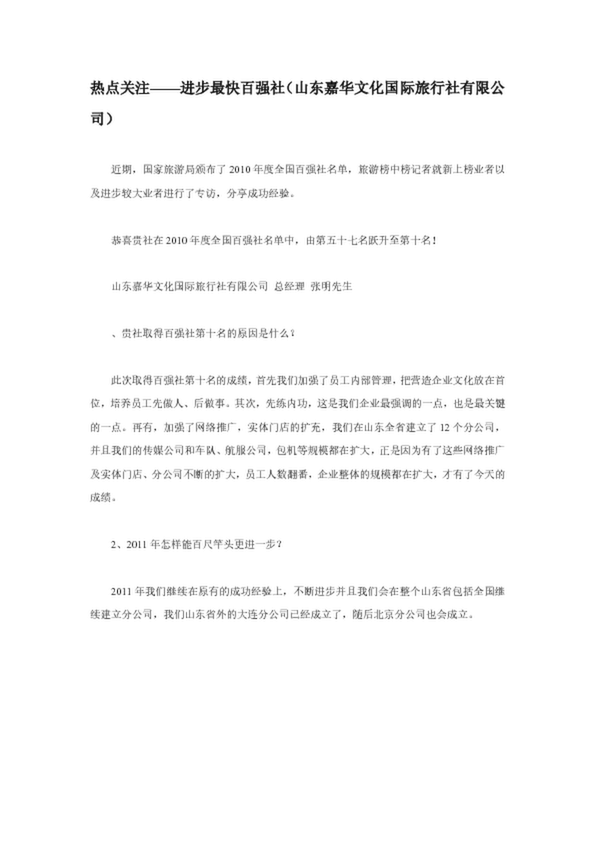 熱點關注——進步最快百強社(山東嘉華文化國際旅行社有限公司)