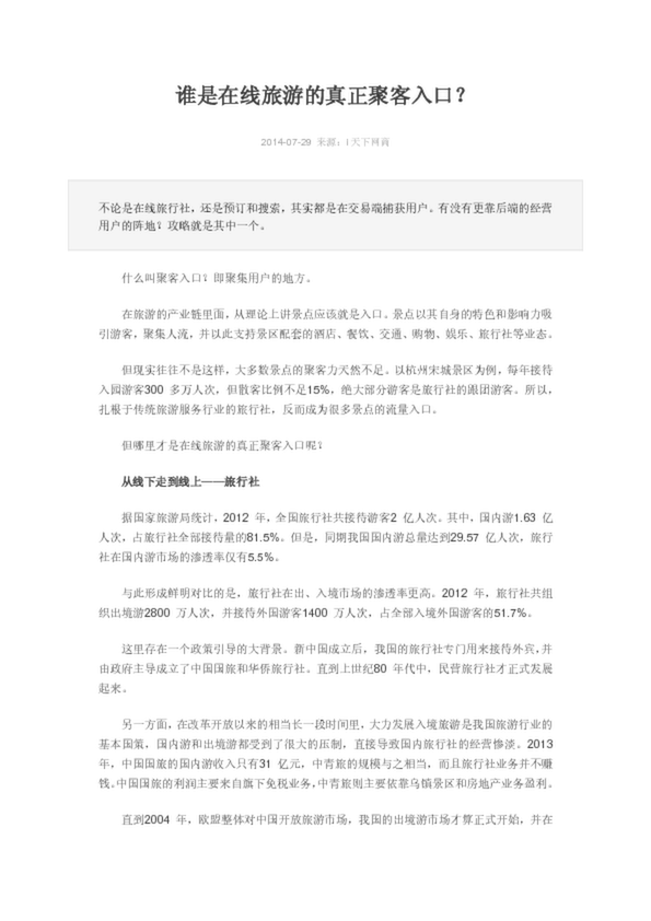 什么叫聚客入口?即聚集用戶的地方。扎根于傳統(tǒng)旅游服務(wù)行業(yè)的旅行社,是很多景點的流量入口。但哪里才是在線旅游的真正聚客入口呢?