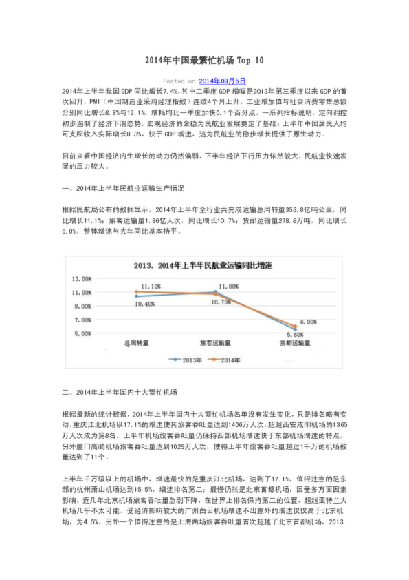 2014年中國(guó)最繁忙機(jī)場(chǎng)Top 10