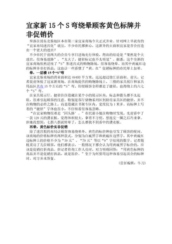 宜家新15個(gè)S彎繞暈顧客黃色標(biāo)牌并非促銷(xiāo)價(jià)